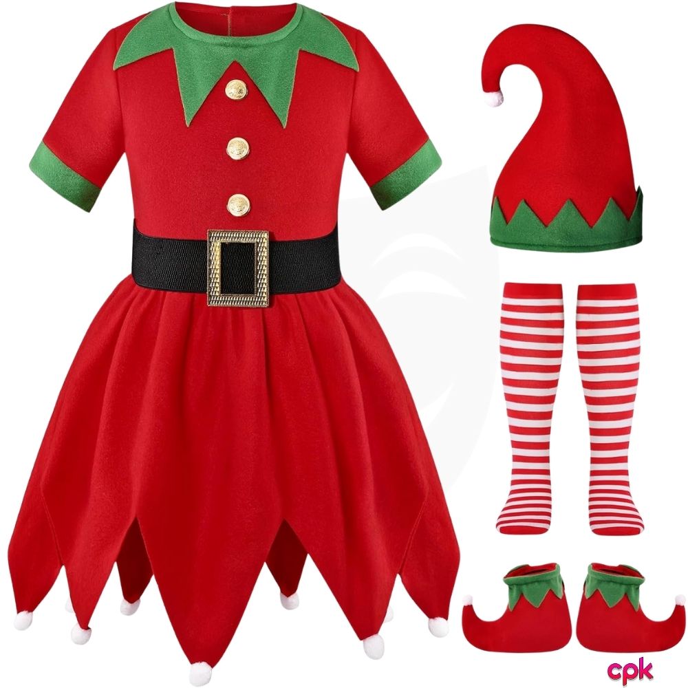 Whimsical and Detailed Designs What makes our Elf costume for kids stand out are the charming details. Each set typically includes a pointed elf hat with a jingle bell, a classic tunic with a decorative belt, and matching striped leggings or trousers. Some versions even come with pointed shoe covers to complete the magical look. Whether your child is performing in a nativity play or greeting guests at a party, these details ensure they look the part perfectly.