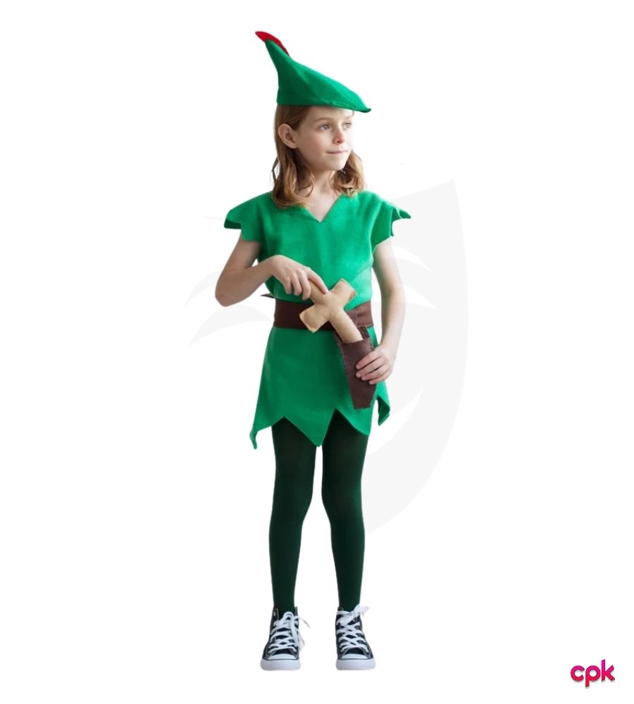 Shop the best Peter Pan costume for kids in Pakistan. Ideal for school fancy dress & book day. Includes green tunic, hat with red feather, and belt. Fast shipping nationwide!